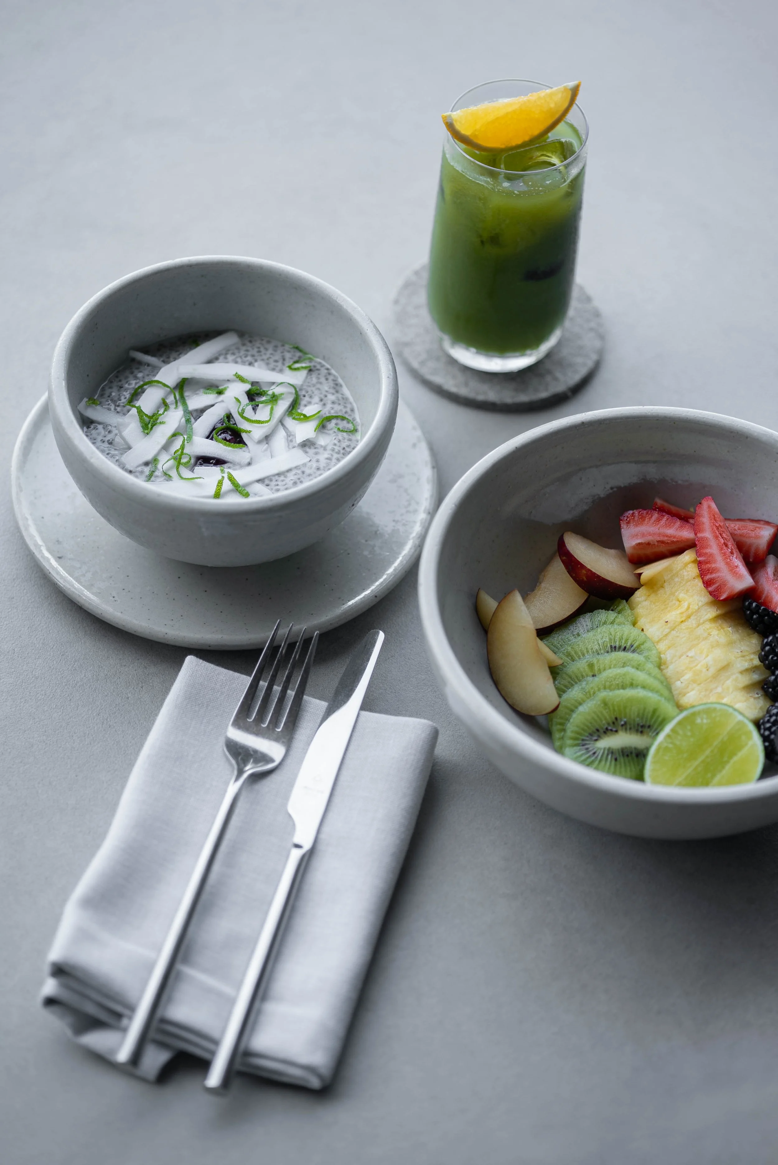 Berries, watermelon, chia, coconut water, lime