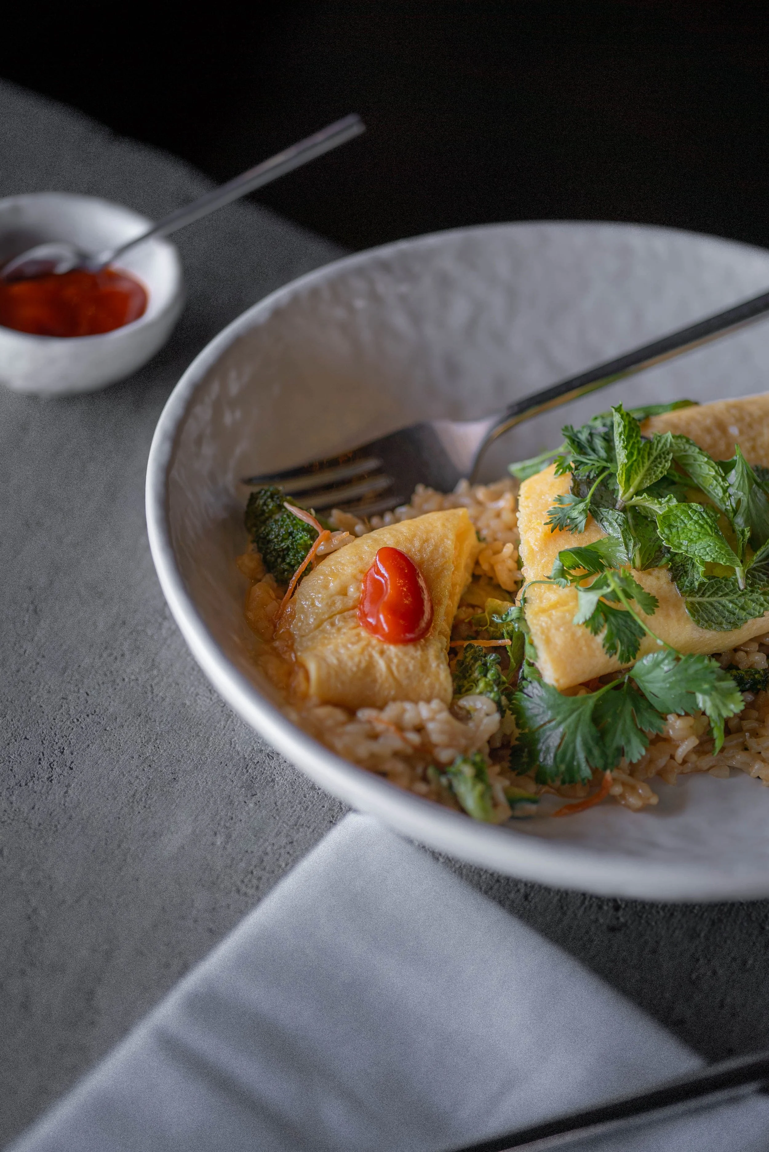 Chef’s Selection! ☆ Dirty rice, chorizo mayo, egg omelette, sriracha
